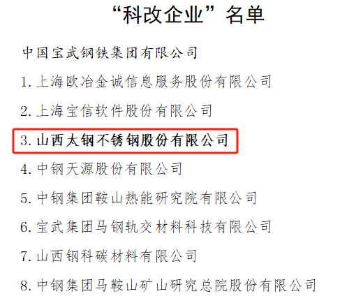 6月20日,國務(wù)院國有資產(chǎn)監(jiān)督管理委員會(huì)公布最新“科改企業(yè)”名單,據(jù)名單顯示,山西太鋼不銹鋼股份有限公司入選其中。