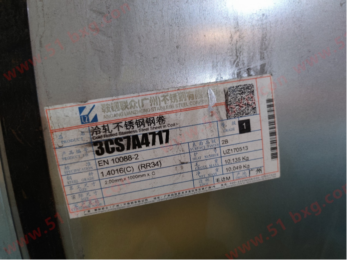 據(jù)本網(wǎng)跟進(jìn)了解,此為鋼廠出口歐洲的430材料。在產(chǎn)品標(biāo)簽的標(biāo)準(zhǔn)一欄也是寫了EN 10088-2字樣。